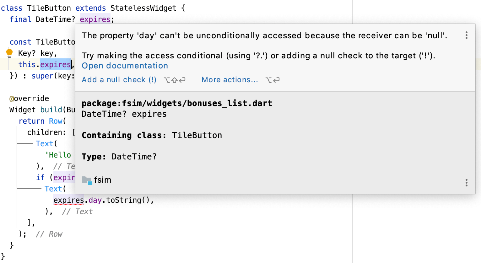 275 2 2 gold badges 4 4 silver badges 8 8 bronze badges. 275 2 2 gold badges 4 4 silver badges 8 8 bronze badges. Flutter is google's ui toolkit for building beautiful, natively compiled applications for mobile, web, and desktop from a single codebase. 14 you can so multiple ternary operators : Flutter provides various ways to display widgets conditionally and in this article, we are going to implement all the methods. Only a particular part of the program is executed when the if statement turns out to be true... Flutter is google's ui toolkit for building beautiful, natively compiled applications for mobile, web, and desktop from a single codebase.